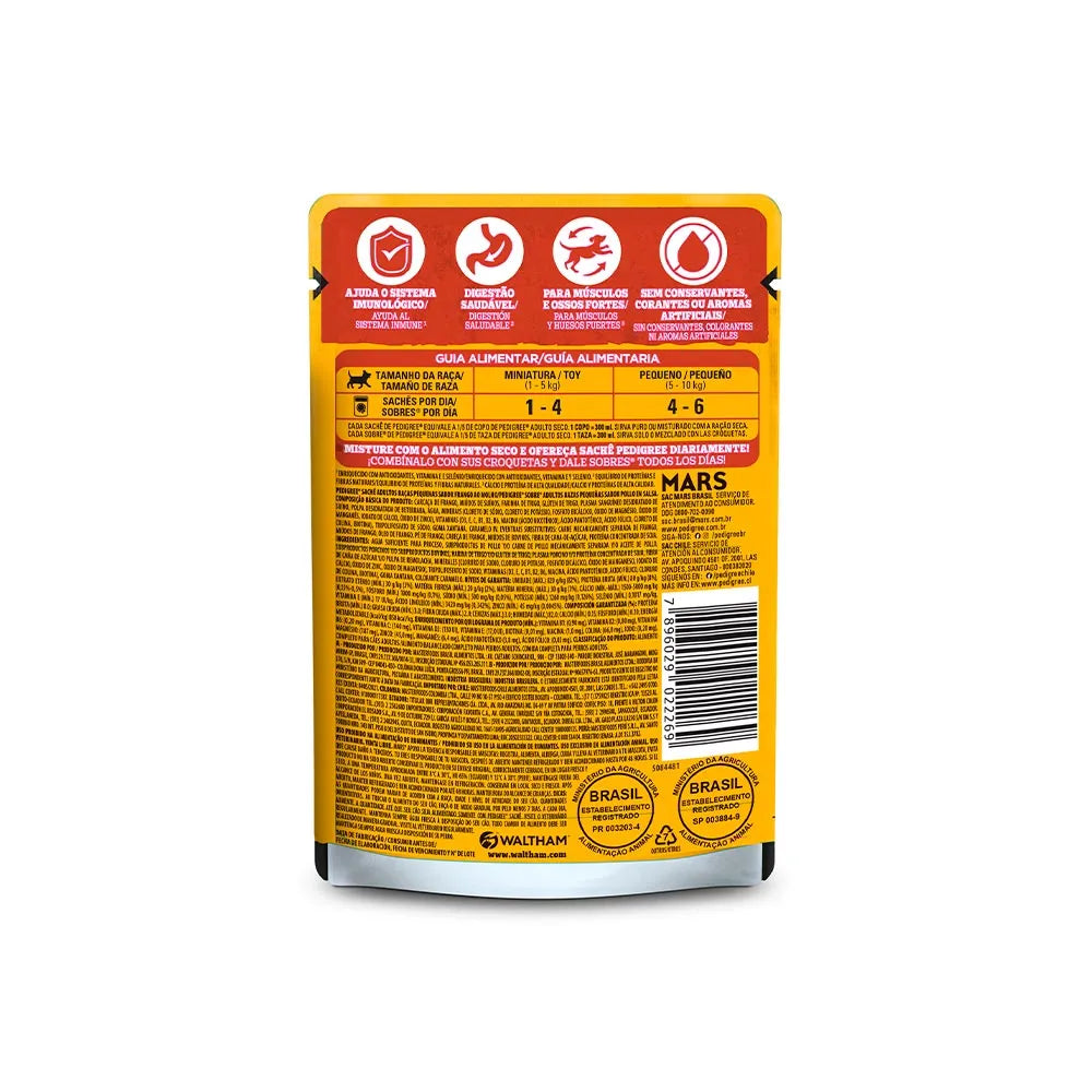 A Ração Úmida Pedigree Sachê Frango ao Molho é uma refeição 100% completa para cães adultos de raças pequenas. Feita com ingredientes naturais, sem conservantes, corantes ou aromas artificiais, possui suculentos pedacinhos cozidos a vapor, garantindo mais sabor e nutrição. Com ômega 6 e zinco, contribui para um pelo saudável e um trato digestivo equilibrado, proporcionando fezes mais firmes e fáceis de limpar. Disponível em embalagem de 100g e kit Leve 12 Pague 10. Ofereça ao seu cão uma alimentação saudável e deliciosa!