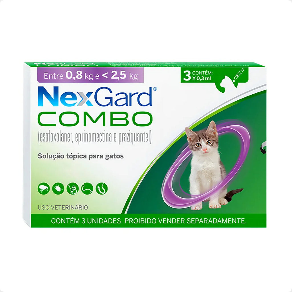 • 1 caixa de NexGard Combo para gatos de 0,8 a 2,5kg